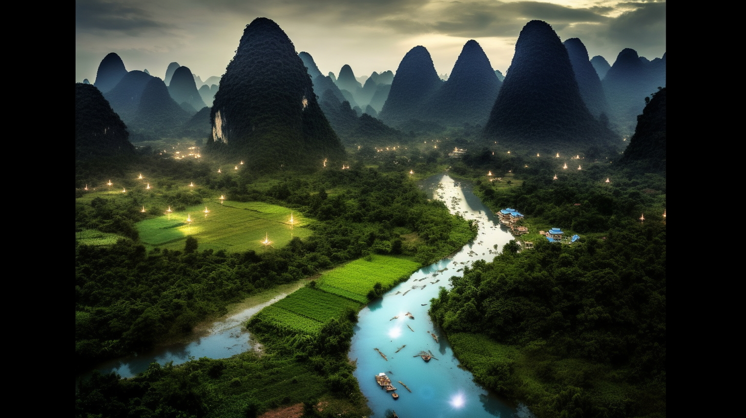 遇龙河发源于临桂县古里河,流经阳朔三乡镇30余个村庄,是阳朔山水的精华,群峰叠耸、绿树丛生,田野纵横,村庄错落,可以观赏到遇龙桥、犀牛望月,穿山古寨、归义城遗址、五指山、双流口、骏马凌空等风光胜迹,是阳朔风景又一佳境。